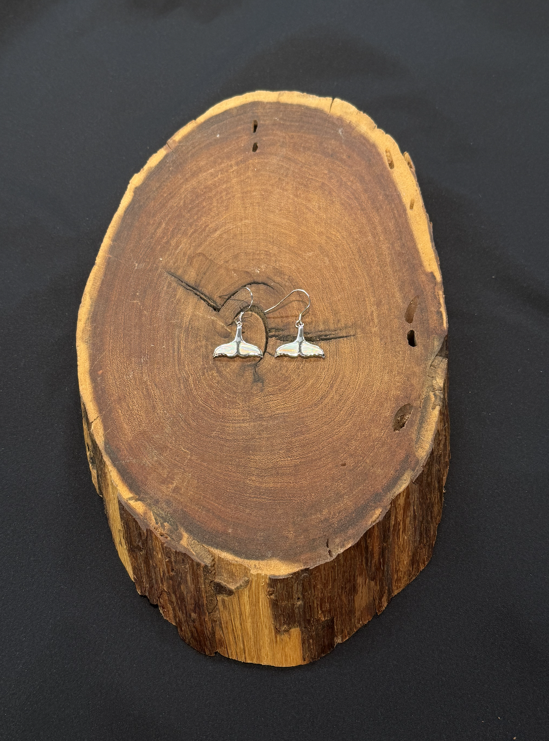 These lovely earrings are a part of our whale tail collection, and can be purchased with a matching necklace. The earrings are made of 925 highest-grade sterling silver with a white opal inside the tail, and feature 925 sterling silver backings. The earrings measure 2 cm x 1.5 cm (not including backing).